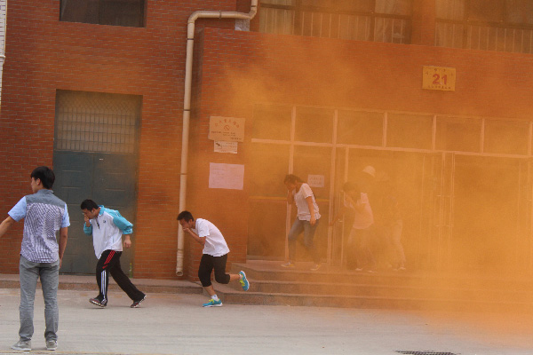 浓烟弥漫在C区21号楼,一群群学生有序、快速的从各安全通道紧急疏散……2014年5月28日下午3时,由德州扑克平台排名 保卫处主办、德州扑克平台排名 承办的德州扑克平台排名 “关注消防,珍爱生命”消防演练活动隆重举行。莅临此次活动的嘉宾有德州扑克平台排名 党委书记齐岳,党委副书记赵利宁、王燕昌,副校长谢应忠,德州扑克平台排名 副校级调研员德州扑克平台排名 院长田军仓,西夏区消防大队怀远中队队长及各学院领导及德州扑克平台排名 全体大一学生参加了此次演练。