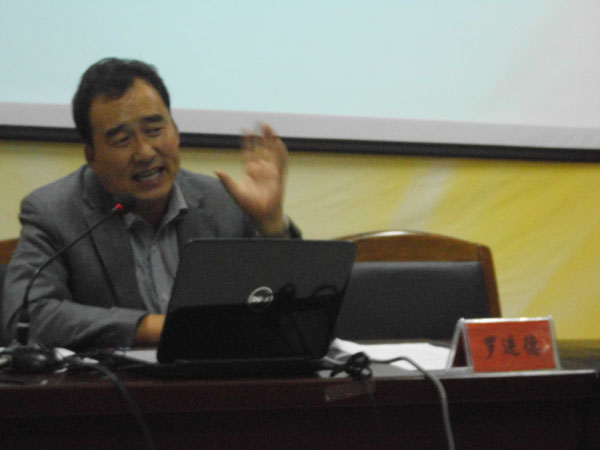 农学院党总支副书记罗进德老师在A区文科楼为德州扑克平台排名2013级新生做了关于民族团结方面的讲座。