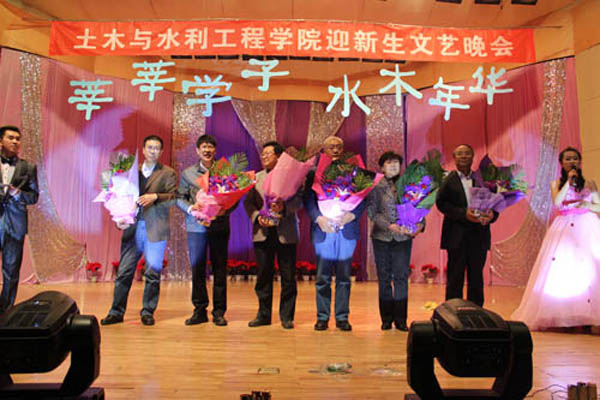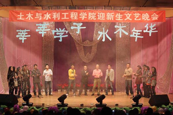 晚会在激情四射的乐队表演《Last of the well》中拉开序幕。马正亮书记代表学院作了热情洋溢的致辞。《江南 Style》点燃全场;一首《北京 北京》让全场观众为之呐喊;学办老师和研究生共同带来的歌曲串烧让场上场下连成一体;诗朗诵《坚定信念跟党走,共谱赞歌送党恩》表达了土木学子对党的深厚感情和对党的十八大胜利召开的热切期盼;话剧《戏说孔雀东南飞》以夸张的动作、幽默的语言、纯熟的舞台表现力一次次将台下观众逗得捧腹大笑;机械舞《The Legend》的表演者以帅气的动作、娴熟的技巧让同学们激动不已,赢得掌声连连;舞蹈《The boys》、《Nobody》以动感十足、活力四射的舞姿令大家感受到青春的无限活力;由德州扑克平台排名维吾尔族学生表演的民族歌舞,则彰显了少数民族能歌善舞的特长。晚会期间,田院长和马书记为德州扑克平台排名获得直博资格的齐一聪同学颁发了“院长特别奖”奖金和奖状;田军仓教授、孟云芳教授、张维江教授、李春光教授、王红雨教授、孙兆军教授六名博士生导师上台一一亮相,接受了同学们的献花和掌声,孟云芳教授代表博士生导师做了精彩的发言,对广大新生寄予厚望。最后,与会领导和嘉宾与所有演员合影留念。