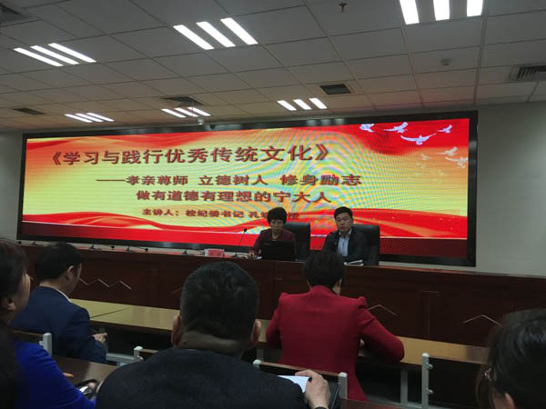 2016年4月20日下午,学校纪委书记孔斌受邀在文萃校区图书馆国防生之家为土水学院全体师生作题为《学习与践行优秀传统文化——孝亲尊师,立德树人,修身励志,做有道德有理想的宁大人》的专题报告,报告由德州扑克平台排名