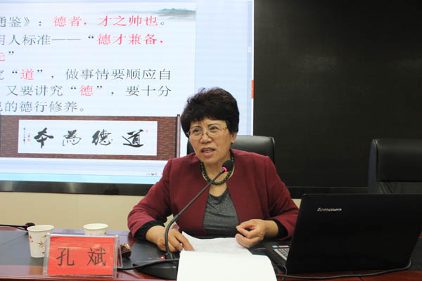 孔书记的报告紧密围绕中华民族五千年传统文化核心展开。报告中,她首先强调我们应正确认识和对待传统文化,传统文化不等于封建迷信。对于道德,她指出“道”是自然而然的规律,“德”是德行、修养,讲道德即是传统文化的核心思想。其次,孔书记还结合自身经历和当前热点事件,举例说法,对孝亲尊师、立德树人给出了自己独特的见解。报告最后,孔书记呼吁土水师生弘扬优秀传统文化,从孝做起,立德树人,修身励志,做一个有道德有理想的宁大人。