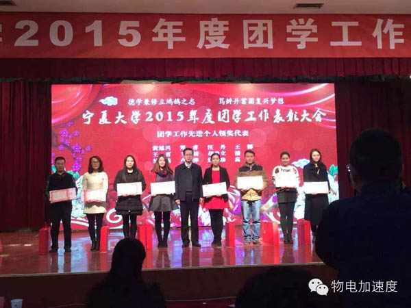 2015年度团学工作表彰大会在贺兰山校区国际交流中心一楼隆重召开。学校各学院团委书记、优秀个人代表及学生代表300余名参加了此次大会。