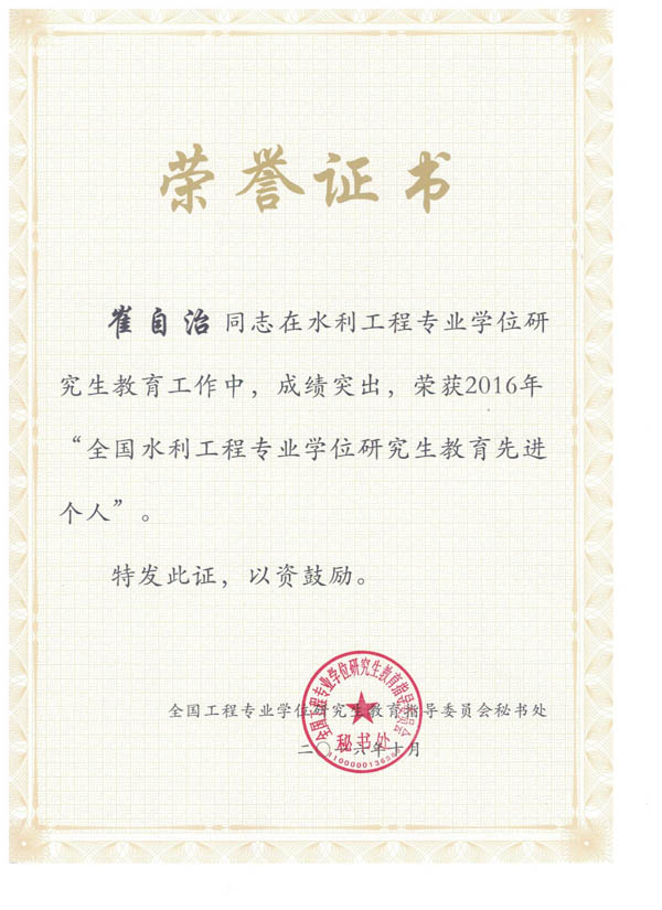 等43所高校、单位的116名领导、专家出席了会议,主要围绕“创新教学方式,提升实践能力,推进内涵发展”的主题分四个小组分别就在线课程建设、案例教学、案例库建设、《工程伦理》课程要求进行了研讨与交流,并形成了相关意见和建议。共表彰了24名“全国水利工程专业学位研究生教育先进个人”和18名“全国水利工程专业学位研究生实践优秀成果获得者”。德州扑克平台排名崔自治教授获得“全国水利工程专业学位研究生教育先进个人”,硕士研究生寇小娜获得“全国水利工程专业学位研究生实践优秀成果奖”。