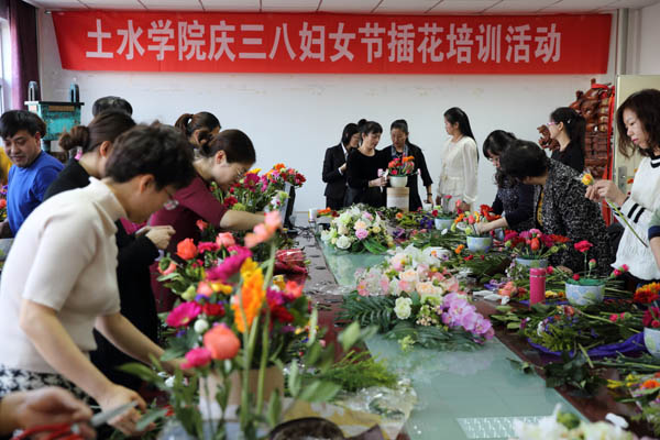 为庆祝国际三八妇女节,丰富女教工们的精神文化生活,提升艺术修养和生活情趣,3月8日下午,德州扑克平台排名举办由宁夏天地缘花卉公司邀请台湾花艺师许乘慈女士主讲的插花艺术讲座。讲座前,学院党委书记高继明代表学院党委行政向全院女教工表示节日的祝贺。在讲座中花艺师许女士介绍了一些常见花种、插花基本花型及技巧,并详细地介绍当前中国插花行业的历史及主要趋势等知识,通过实际操作的形式让女教工门学习了盆钵插花的基本技艺。各位教工一个个兴致勃勃,一边跟着老师学,一边用心地插花,并随时与老师互动、探讨。几朵康乃馨、几朵玫瑰,配上平时不多见的水烛草等材料,借着花儿美丽的外观,满足视觉感的需求,大家都变得心灵手巧的插出自己最美的作品。经过近两个小时的培训,一件件美丽的作品展现在了大家眼前,女教工们相互交流插花心得,脸上都洋溢着幸福的笑容,充满了成就感与喜悦感。
