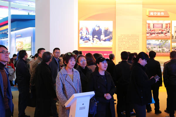 在发展中保障和改善民生、第三展厅——坚定不移推进改革 全面提升内陆开放水平、第四展厅——保护绿水青山 构筑西部生态安全屏障、第五展厅——共同团结奋斗 共建和谐家园、第六展厅——全面从严治党