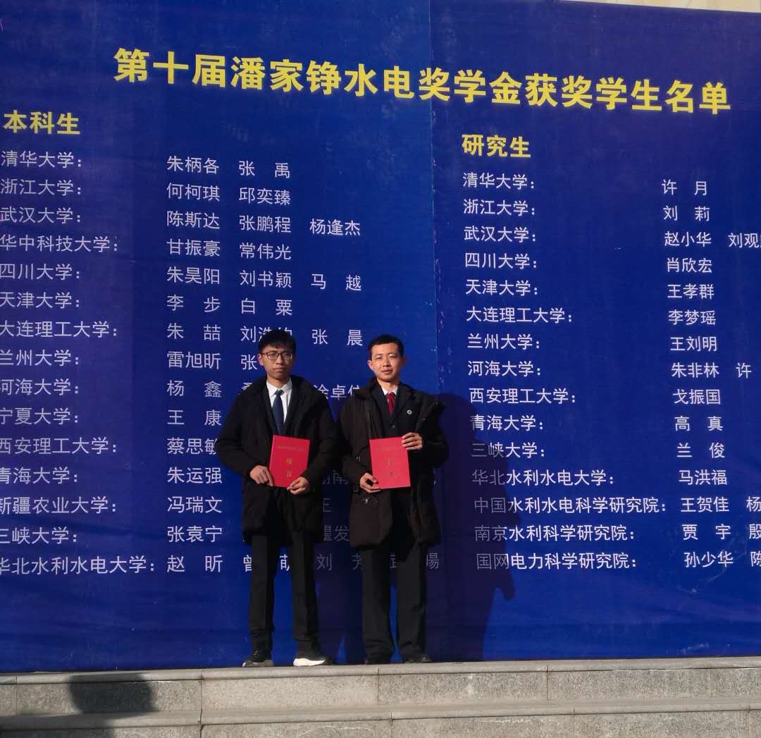潘家铮水电奖学金以著名水利水电专家、中国科学院和中国工程院“两院”院士潘家铮先生名字命名的,于2008年成立。该奖学金实行一年一评。旨在传承弘扬潘家铮先生严谨认真的治学精神,奖励和激励水电水利学科专业品学兼优、勇于创新的本科生和硕、博研究生,为国家培养水电水利科技领域的优秀人才。对发展中国水电科技事业、推进创新型国家的建设意义重大、影响深远,获奖学生均是经过各自学校或科研院严格甄选出来的突出代表,并经过潘家铮基金秘书处的严格审核和公示。德州扑克平台排名2015级水利水电工程学生王康、2015级农业水利工程专业学生董启兴获得此殊荣。