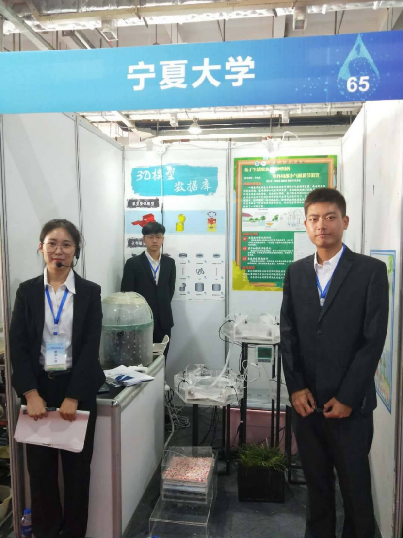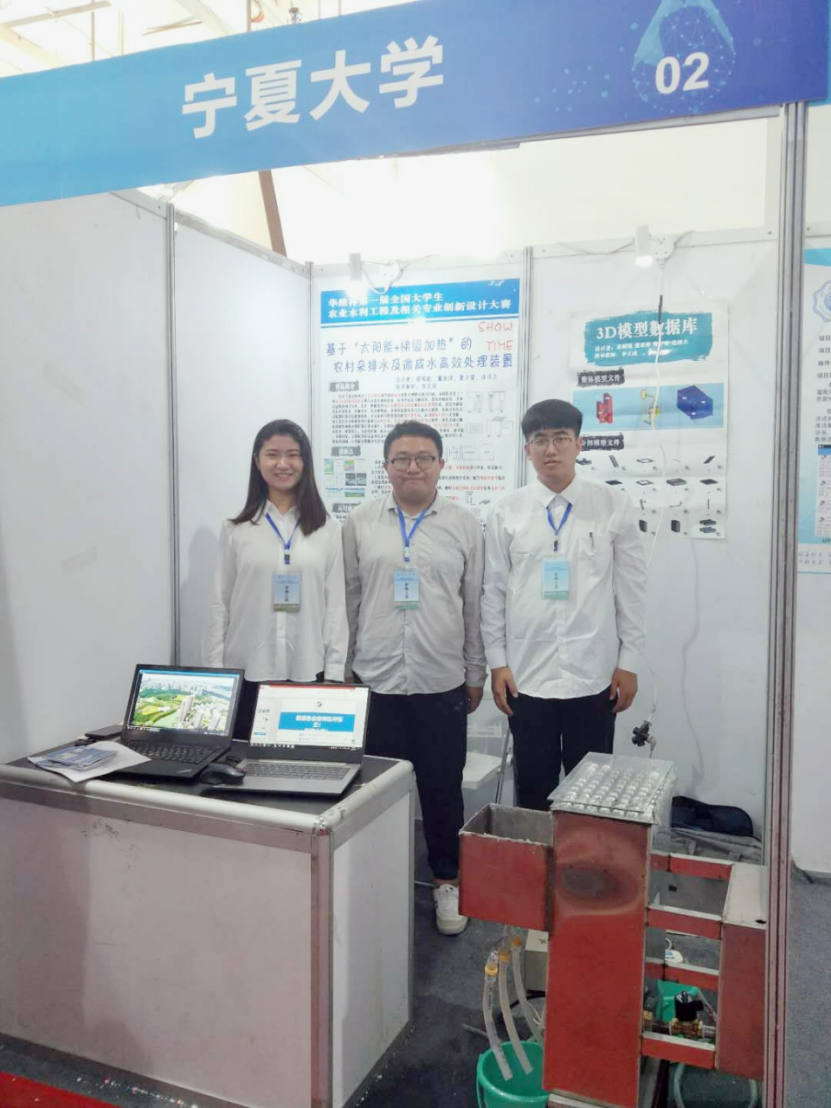 李王成老师指导,姜明旭、董亚萍、曹子萱、连泽立共同制作的“基于太阳能+梯级加热的农村杂排水及微咸水高效处理装置”喜获研究生创新组三等奖;刘娟老师指导,王平、赵雪梅、魏红宁,彭锐共同制作的“智能正渗透水肥自补给系统”喜获本科生创新组一等奖;申晓晶老师指导,郑娇萌,锁丽燕,陈颖琦,李启航共同制作的“基于生活废水多级回用的室外局部小气候调节装置”喜获本科生创新组二等奖;燕宁娜老师指导,黄一凡,张天然,靳文兵,郑娇萌共同制作的“吾所居兮——宁夏移民新村农宅风貌本土化营建”喜获本科生创新组二等奖;冯东溥老师指导,姚菲、吴星、吴萍、徐玉卿共同制作的“农村饮用水水质净化及预警系统”喜获本科生创业组二等奖;王德全老师指导,马慧娟、马龙、曹雪妮,姜明旭共同制作的“水之蓝,梦之蓝”喜获本科生创业组二等奖;