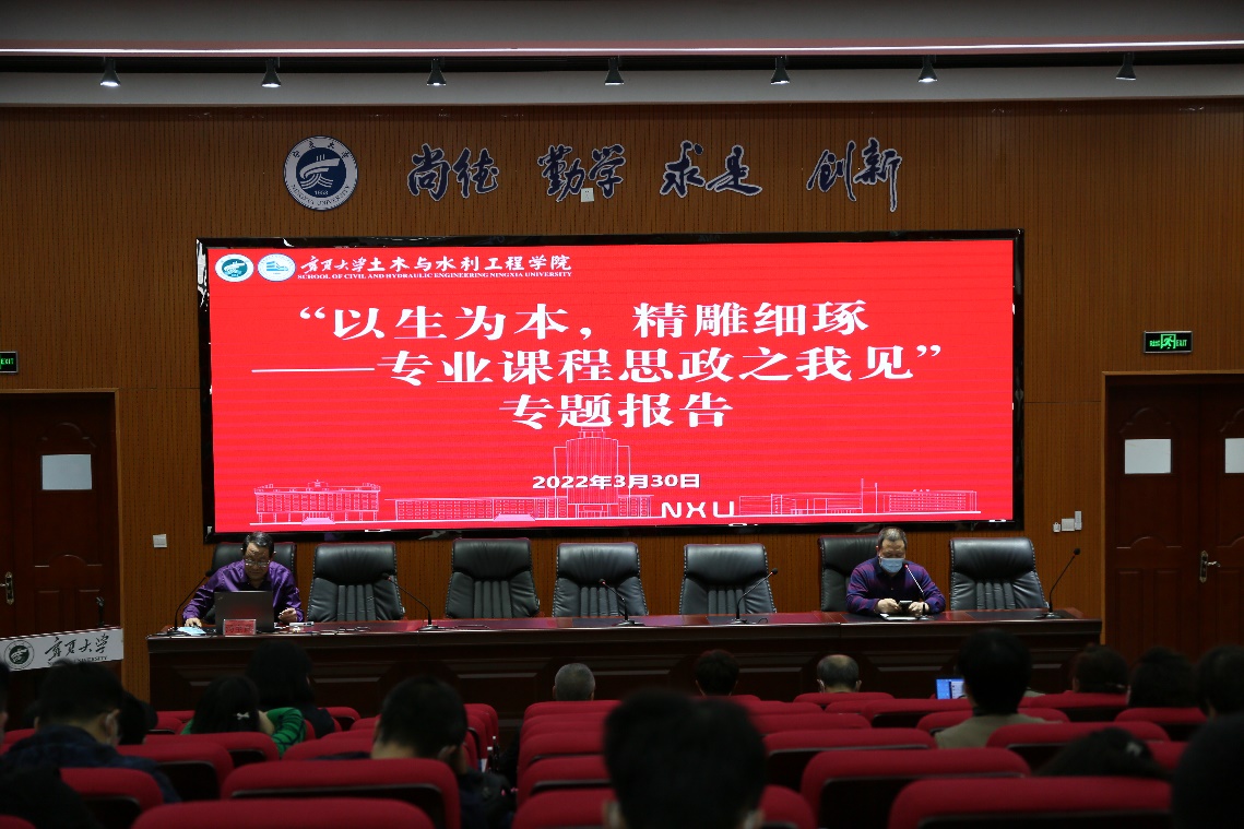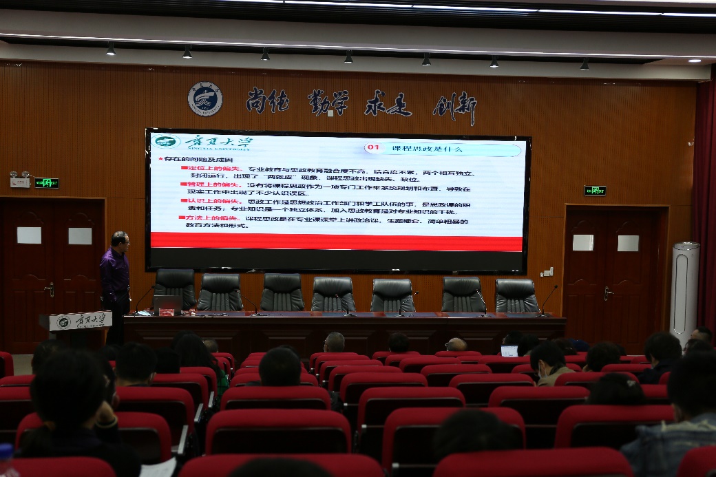 全体教职工作了题为《以生为本,精雕细琢专业课程思政之我见》专题讲座,讲座由李王成副院长主持,学院书记及班子成员、全院教职工聆听了讲座。
