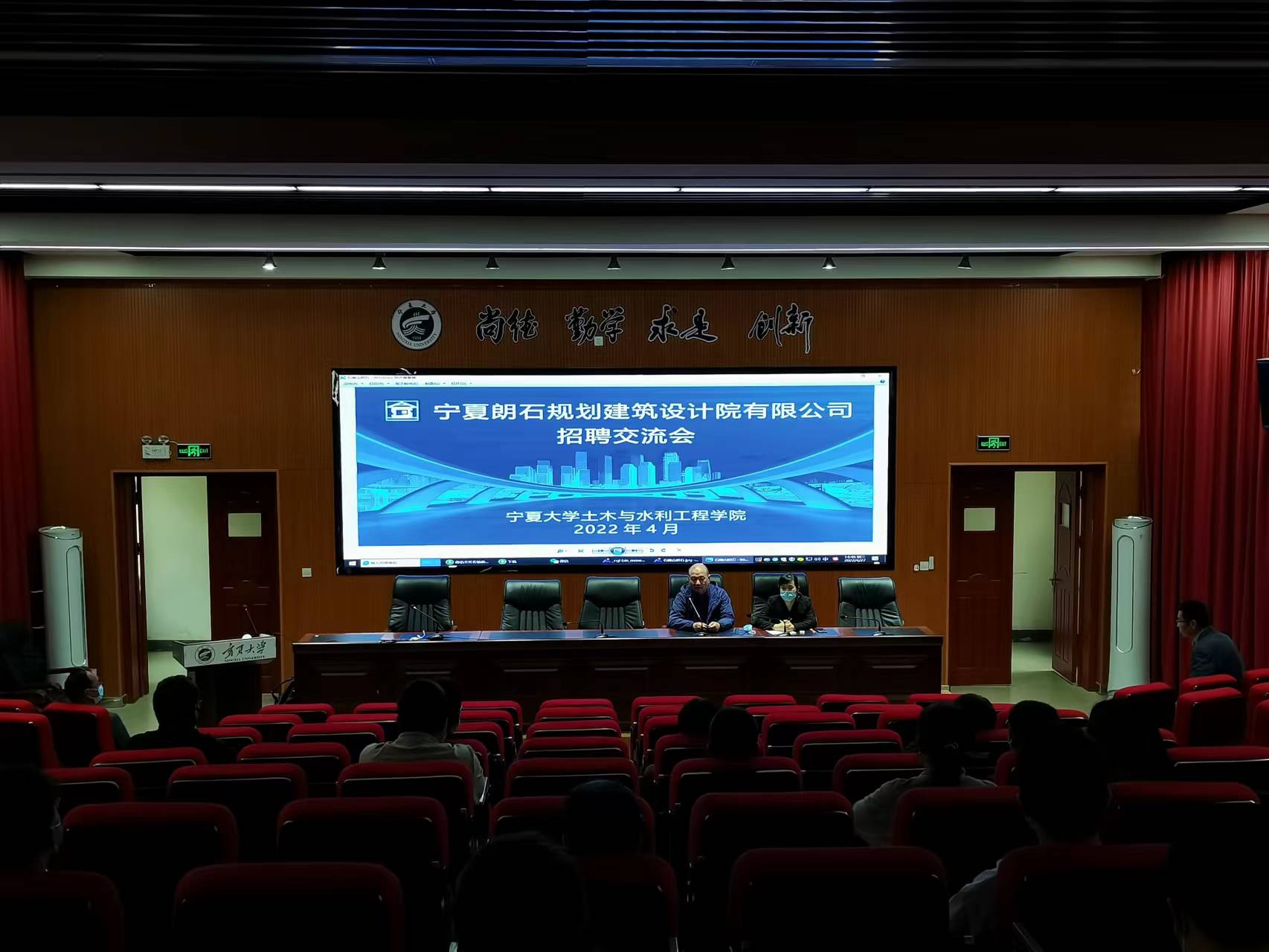 2022届毕业生就业工作,认真分析和研判就业形式,努力实现毕业生高质量和更加充分就业,4月27日下午在知行楼三楼会议室,建规系组织召开了宁夏朗石规划建筑设计研究院招聘交流会。宁夏朗石规划建筑设计院院长张吉宁、办公室主任赵垒、土水学院党委副书记苏宇静、建规系主任马冬梅、副主任徐浩出席会议,建规系、交管系31位未就业毕业生参加了交流会。