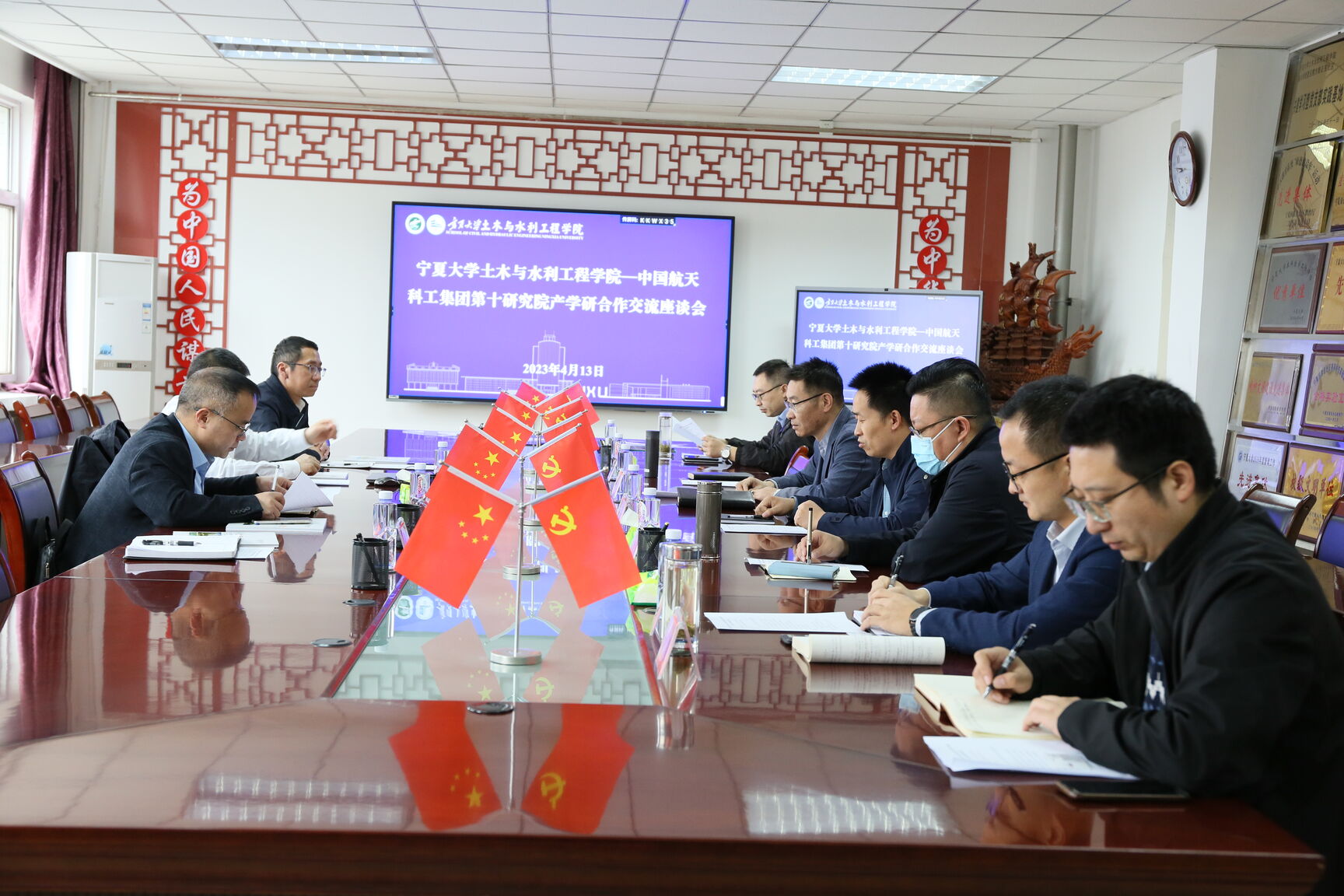 基本情况、研究领域及主要成果,并就学生就业、科研合作、技术服务、成果转化相关领域进行了深入座谈,尤其是在土木工程、交通工程与管理、智慧农业与智慧水利等方面的研发平台、资源及合作前景等方面进行热烈的交流。随后参会人员一行实地参观了宁夏黄河水联网数字治水重点实验室以及结构实验大厅。
