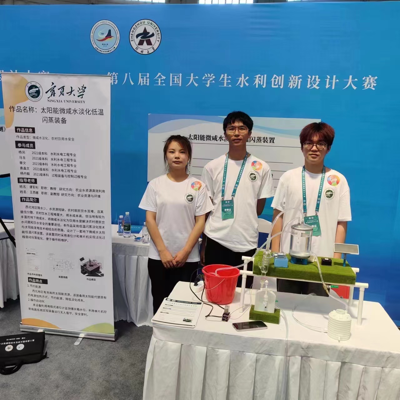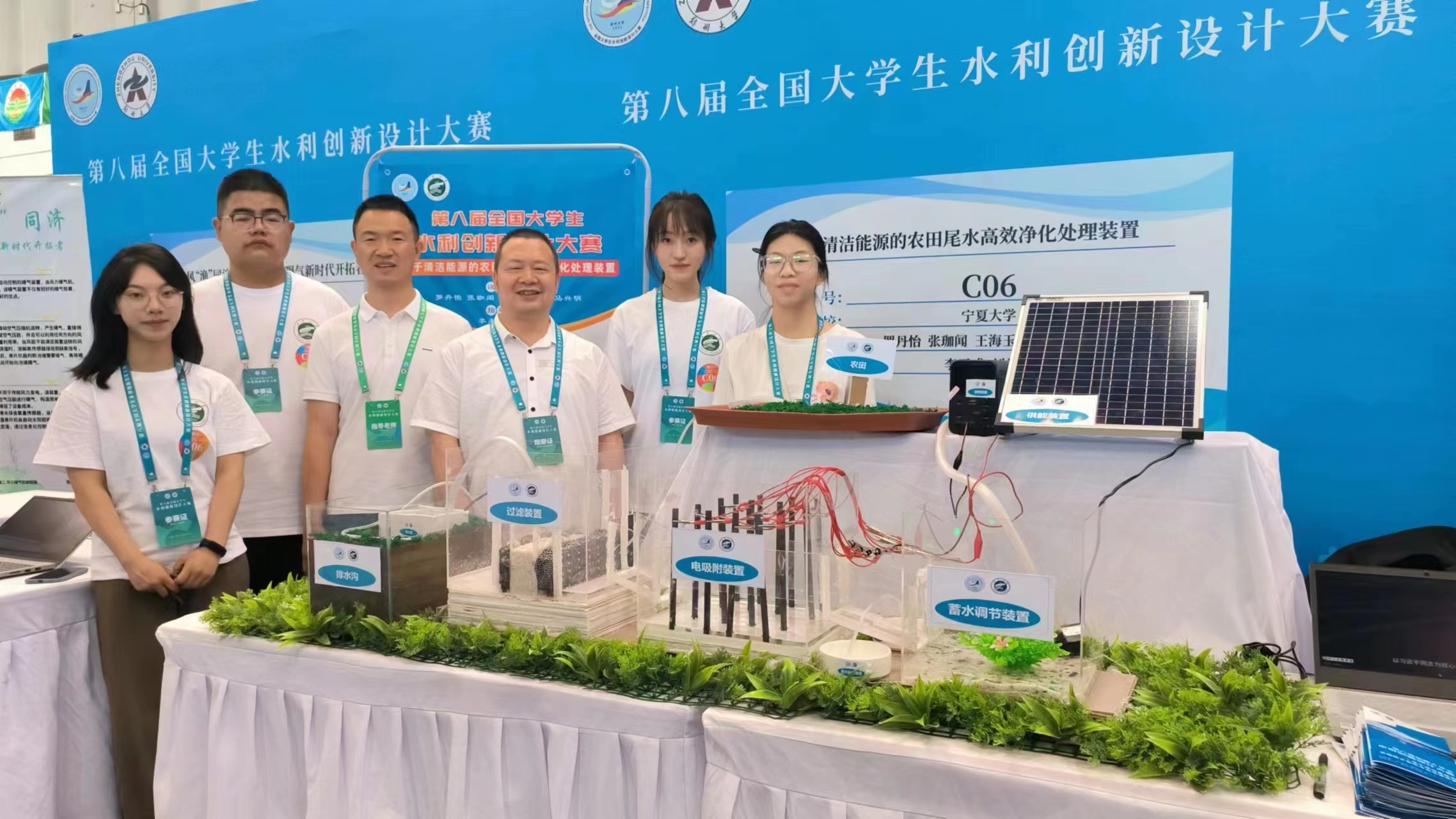 还获得了优秀组织奖。李王成、刘学智老师联合指导,罗丹怡、张珈闻、王海玉、杨进、马兴明同学的作品“基于清洁能源的农田尾水高效净化处理装置”与谭军利、王西娜老师联合指导,杨凤、马龙、章文、袁文晶、杨丹毅同学的作品“太阳能微咸水淡化低温闪蒸装置”均喜获一等奖;申晓晶、冯东溥老师联合指导,王水瑶、李旭、李浩、唐松、线启龙同学的作品“基于暗管排水的农田灌溉水净化循环系统”喜获二等奖。