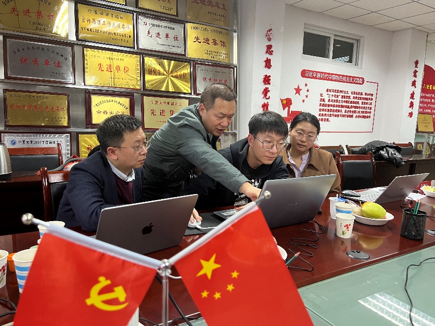 2023�10�10日,工程中心负责人组织核心骨干成员对网评材料进行了集中撰写,校领导及科研院对网评材料进行了初审并给出了修改意见,并按时提交了网评材料�2023�12�5日,校领导亲自率科研陀土水学陀工程中心有关负责人及共建单位组织了现场评估,教育部相关领导及评估专家来到宁夏大学,对工程中心建设情况进行了深入的了解,专家组听取了工程中心的工作报告,进行了质询与交流,查阅了相关佐证材料,并给出了高度肯定与良好的评价;2023�12�28日,李学斌副校长带领科研陀土水学陀工程中心有关负责人前往教育部,由工程中心主任李王成进行汇报,汇报流畅清晰、准确简洁,各模块联系紧密,语言朴实逻辑清晰、特色优势突出,回答问题直接了当,获得专家一致好评�