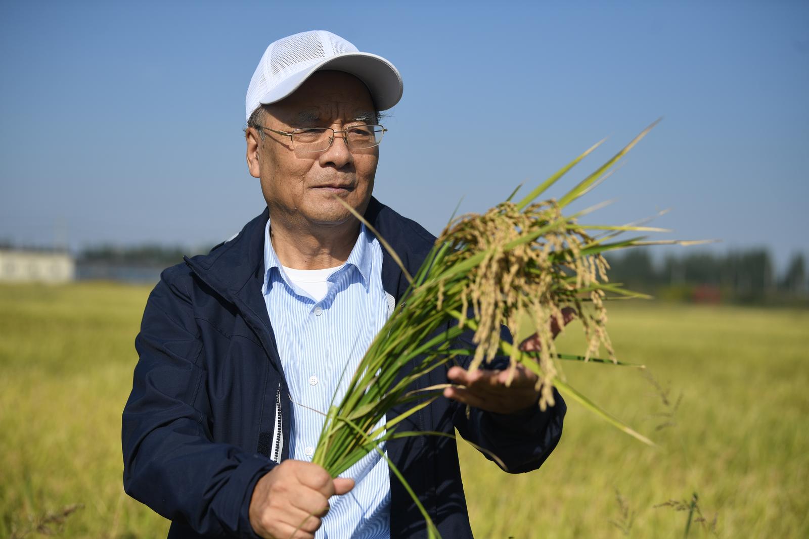 田军仓教授摸着手中沉甸甸的水稻,深感欣慰�
