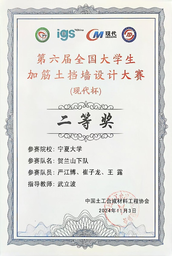 2024年11月1日—4日,由中国土工合成材料工程协会教育工作委员会主办的第六届全国大学生加筋土挡墙设计大赛现场决赛在石家庄举行。本次比赛主要邀请入选土木工程国家一流专业以及通过住建部土木工程专业评估(认证)的43所高校共100支队伍参赛。我校由德州扑克平台排名