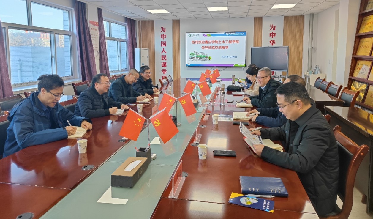 2024�11�29日,嘉应学院土木工程学院沈飞副院长、欧阳志勇副院长、教师代表杨智硕、赵亚哥白一行来宁夏大学土木与水利工程学院参观交流。宁夏大学土木与水利工程学院院长毛明杰、副院长李王成、党总支委员车佳玲、交通与工程管理系系主任马熙伦、土木工系教师代表张尚荣以及吕龙龙参加座谈。双方就土木与水利工程学科发展现状与未来规划进行了深入探讨,并参观了学院结构大厅实验室,进一步加深了双方在学术领域的交流合作�