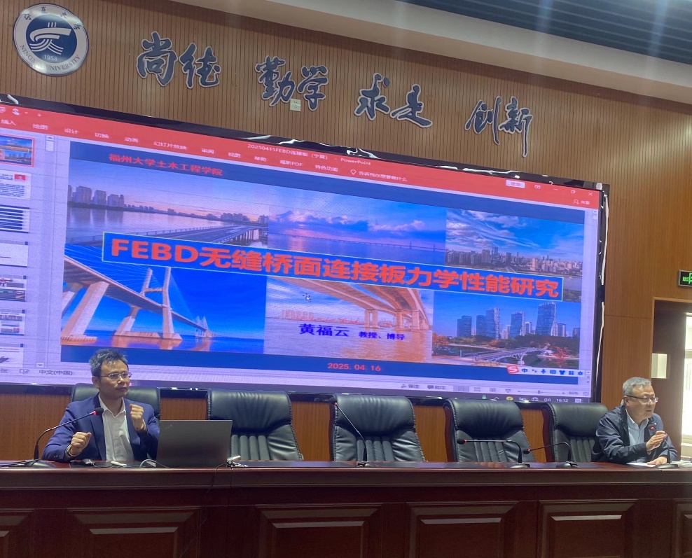 2025�4�16日下�15:00,于知行楼三阶会议报告厅,福州大学黄福云教授应邀为土木与水利工程学院师生进行题为“FEBD无缝桥面连接板力学性能研究”的学术讲座,学院师生共�70余人聆听了讲座,讲座由学院毛明杰院长主持�