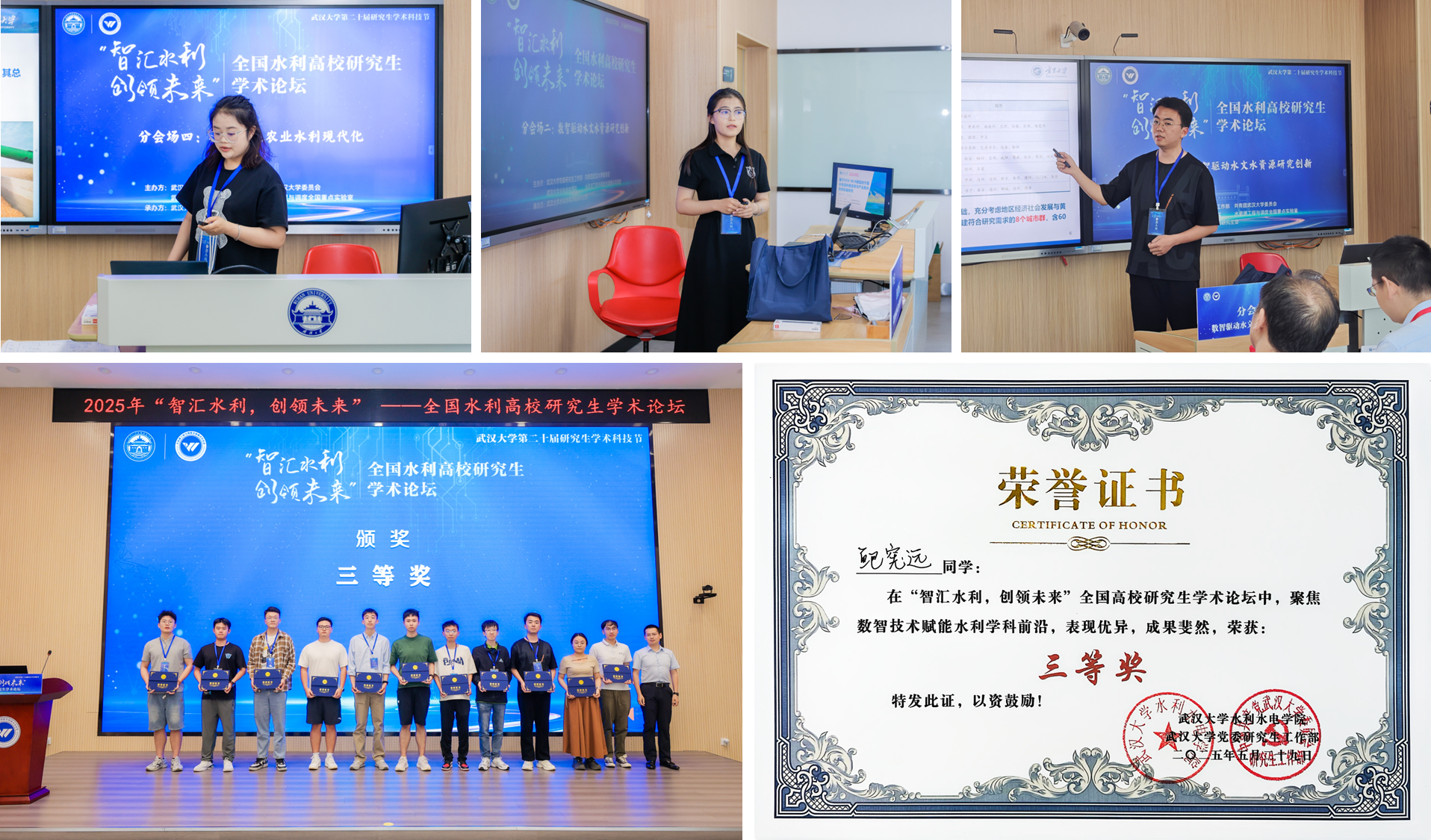 2025�5�29日,由武汉大学主办的“智汇水利,创领未来”全国水利高校研究生学术论坛在武汉举行。论坛聚焦水利学科数智化发展,汇聚来自清华大学、武汉大学、河海大学等16所高校�200余名特邀专家与师生到场。我院水利工程系何进宇副教授指导�2023级硕士研究生鲍宪远�2024级硕士研究生李欣欣、温鑫雨受邀代表宁夏大学参加论坛并作学术报告�