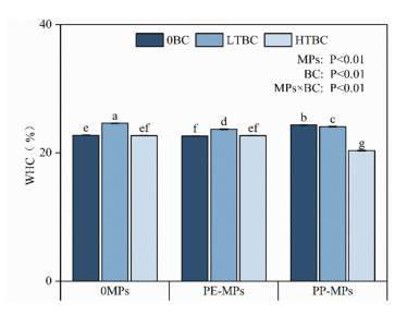 图2. BC和MPs对土壤持水能力(WHC)的影响。