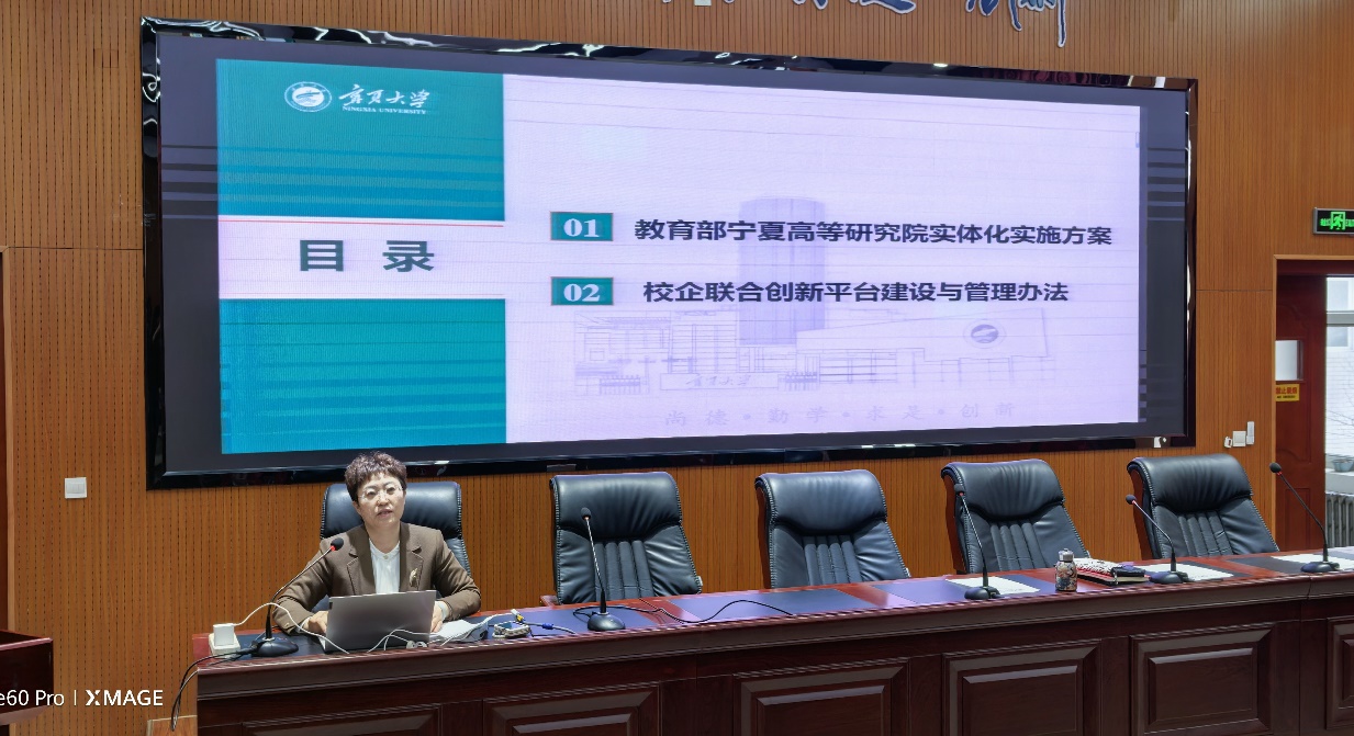 尹娟结合宁夏大学现状围绕宁夏高等研究院的战略定位、核心政策与发展蓝图进行全面宣讲。宁夏高等研究院作为全国首个部区共建、以省区命名的高等研究院,是推动教育、科技、人才、产业深度融合的重要创新平台,对我校抢抓发展机遇、优化学科布局、提升科研与育人水平具有重大意义。全体教职工要提高政治站位,深刻认识高等研究院建设的战略价值,精准把握政策导向,主动对接平台资源,将个人发展、团队建设与学校事业发展紧密结合,积极投身高层次人才培养、高水平科研攻关与高质量成果转化工作。