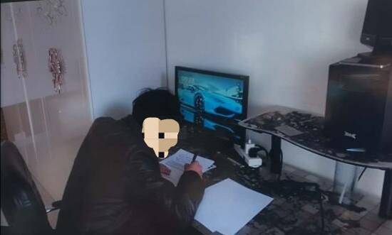 1.要求准备两台具备摄像头和麦克风的设备(手机、电脑、平板),监考教师提前预约腾讯会议(或使用其他合适的平台或监控方式),并将会议号发给学生登录,在线指导学生摄像设备摆放位置。建议将摄像设备架高,摆放在学生右后方位置,能够看清楚学生周边环境、学生脸部、考试桌面、答卷纸张、接收试题设备(手机、平板、电脑)。如下图所示: