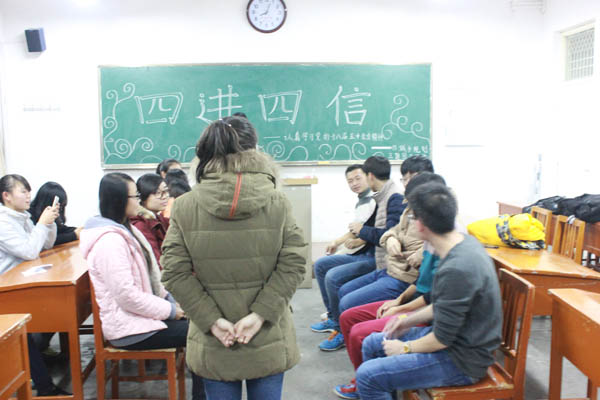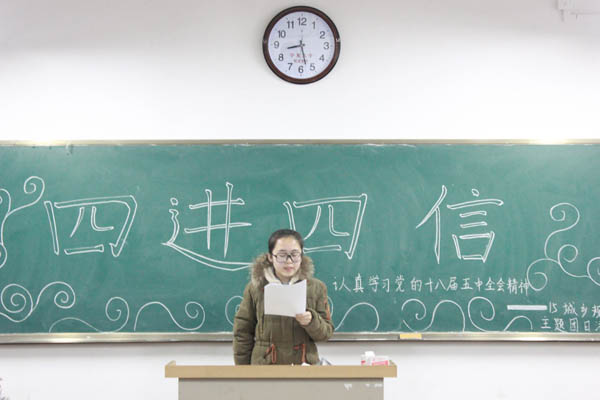 2015年11月26日晚, 德州扑克平台排名2015级城乡规划班在工科楼702教室举行“增进‘四进四信’ 认真学习党的十八届五中全会精神”的主题团日活动。2015级城乡规划班全体成员参加了本次活动。