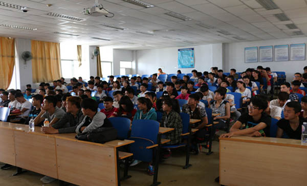 讲座中,郭鑫同学首先强调了学习的重要性。她提醒大家要及早树立自己的目标,多多接触与自己所学专业相关的知识。随后,她以自己的过往经历为主线,通过讲述自己参加团委组织、创新实验、“创青春”设计大赛等活动的事例,传递自己“对一份事业,一个机会始终执着”的理念,号召大家积极尝试感兴趣的东西,扩展视野丰富阅历。最后,郭鑫同学还表达了自己对待生活的态度和看法。她将智慧喻为水,欲以柔度化问题。朴素自然的道理引起在场学生的共鸣,大家纷纷点头称是。