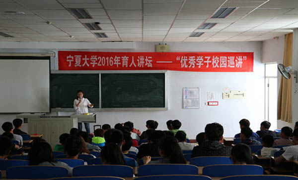 ,在怀远校区一教为体育学院2015级同学作巡讲报告,向大家分享自己的成长体会与心路历程。