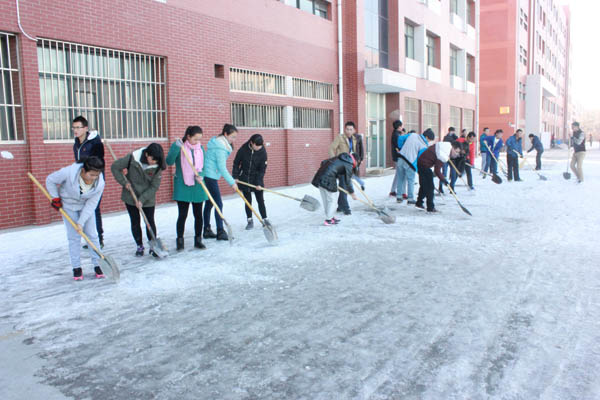 此次扫雪活动,一方面为广大同学生打造了一个安全畅通的出行道路,另一方面,也让参与劳动的同学体会到了互帮互助、团结一致的力量。