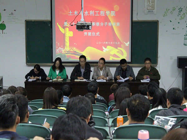 第二十七期入党积极分子培训班开班仪式在文萃校区工科楼三阶教室隆重举行。学院党委副书记苏宇静、学办主任郭利、团委书记王娜、16级辅导员陶雪梅、兼职辅导员惠迎新和韩东以及本期全体入党积极分子参加了此次开班仪式。