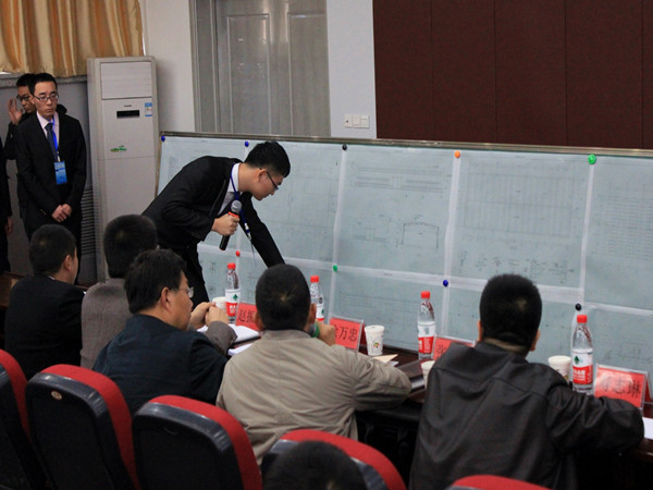 院长毛明杰主持并发表讲话,他希望各位参赛选手充分发挥自己的聪明才智,沉着、认真的对待比赛,以良好的心理素质和精神风貌,赛出风格,赛出水平,取得好成绩。比赛由刘海峰副院长主持进行,各团队展开了激烈的竞争,一张张精美的设计图纸依次陈列在各位评审和同学眼前。各个团队争分夺秒,通过五分钟陈述,用最简练的话语介绍出他们的设计思路和方案。在面对评委老师的提问时,他们镇定自若,展现出了各自扎实的专业基础知识和丰富的课外知识储备。