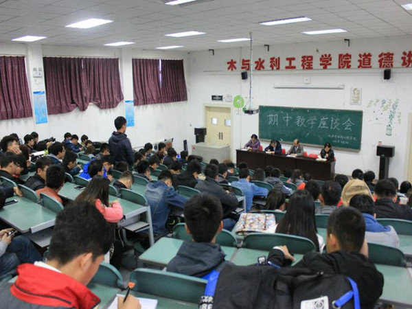 期中教学座谈会,意在本学期中树立良好的学习风气,激发学生的进取意识,为土水学院学风建设再添光彩。学院院长毛明杰、副院长刘海峰、教科办主任白俊英、教师伊宁出席此次会议,13至16级各班班长、学习委员、团支书参加此次座谈会。