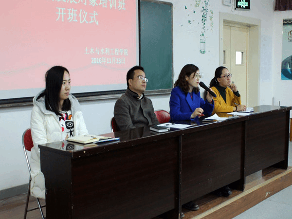 2016�11�23日,第四�党员发展对象培训班开班仪式在宁夏大学文萃校区三阶会议室成功举��土木与水利工程学院学办主任郭利主持仪式。学院党委副书记柳松洁,团委书记王娜�16级辅导员陶雪梅及第四期发展对象全体成员参加了此次仪式�