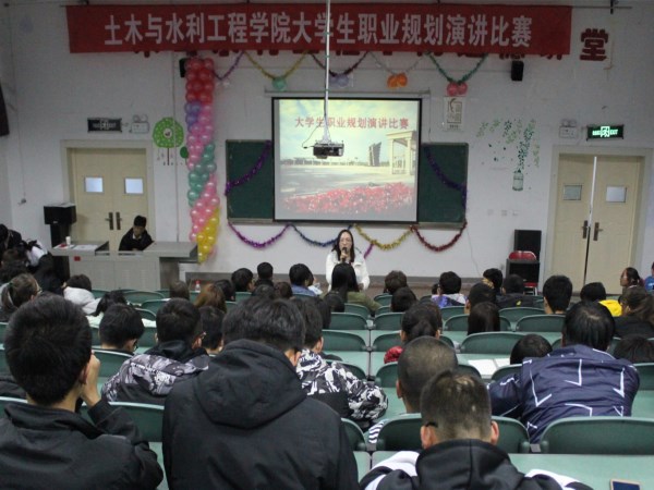 大学生职业规划演讲比赛决赛成功举行。井井有条的会场布置预示着这里即将发生一场酣战。团委书记王娜、16级辅导员胡思斯、专职辅导员陶雪梅亲临战场,与学院学生代表共同观看此次比赛。经过一路地披荆斩棘,来自16级工程管理班的何佳蔓同学脱颖而出,获得此次比赛的一等奖。