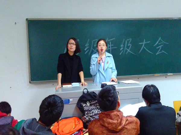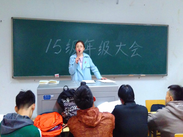 2017年4月7日星期五中午,15级全体学生于工科楼三阶召开了年级大会,此次会议由柳松洁书记做重要讲话,15级辅导员马小凤主持。