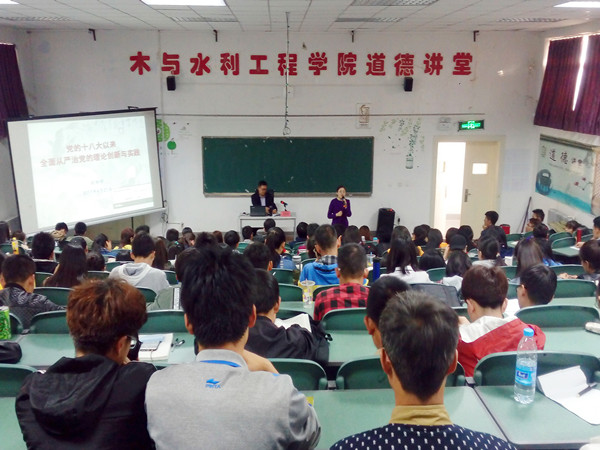 为加强入党积极分子和青马班的同学对党的十八大内容的了解、对全面从严治党精神的切身感悟�2017�4�21日下午六点半,党课第五讲—党的十八大以来全面从严治党的理论创新和实践在宁夏大学文萃校区工科楼三阶教室顺利举行,学院党委书记高继明为主讲,学院党委副书记柳松洁主持,全体入党积极分子和青马班的同学参加了本次党课�