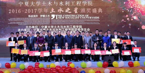 在“土水之星”的宣传片中,一个个鲜活的榜样形象出现在屏幕上,他们用最真实的语言,讲述着属于他们自己的故事。在全场师生的热烈掌声中,与会领导为23位同学、6位班级代表、6位宿舍长颁发了荣誉证书和奖学金,并与获奖个人和集体合影留念。获奖同学在感言中表达了对学校、学院的热爱和感激,并表示一定坚持德智体全面发展,勤于学习,善于创造,甘于奉献,立志成才,大力弘扬优良的校风和学风,为推动学校、学院的发展建设贡献力量。