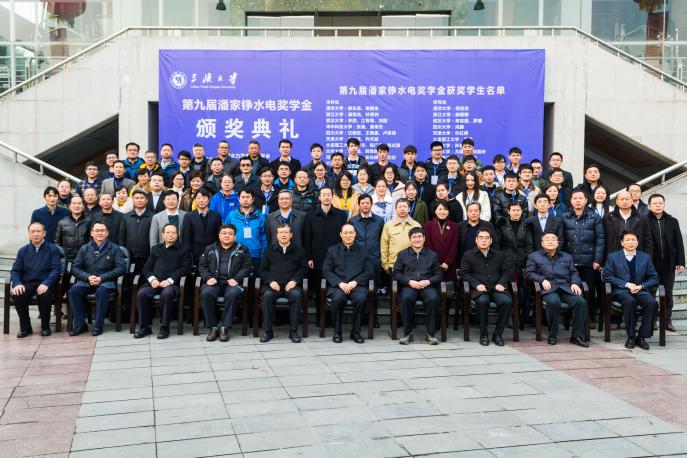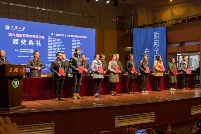 2017�12�16日,由中国水力发电工程学会和潘家铮水电科技基金管理委员会主办、三峡大学承办的"第九届潘家铮水电奖学金颁奖典�"在三峡大学橘颂音乐厅举行。中国水力发电工程学会常务副秘书长、潘家铮基金秘书长吴义航主持颁奖典礼,三峡大学党委副书记王建平主持演讲报告会。中国华电集团安全生态环境部主任王辉、中国电力建设集团科技部主任李志谦、中国电建集团北京院总经理郝荣国,以及来自水电规划设计、建设施工、电网经营、大学、科研院所等单位的领导和来宾,获奖单位的老师和学生,三峡大学师生�300余人出席了典礼。本届共有来自清华大学、浙江大学、武汉大学、四川大学、宁夏大学等18所高校和科研院所�40名优秀本科生�20名优秀研究生获得奖学金,两位获奖学生代表分别发表了获奖感言。我�2014级农业水利工程专业学生马鹏�2014级水利水电工程专业学生于明田获此殊荣�
