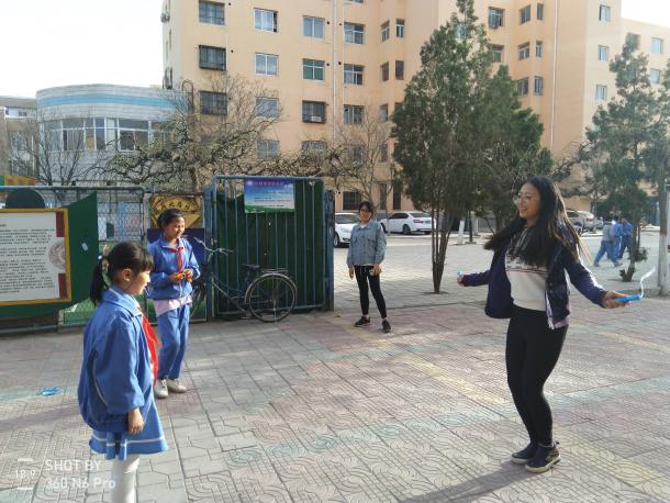 在等待高年级同学放学的过程中,志愿者们先是给低年级的同学进行作业辅导。虽然是周末的前一天,但是孩子们的学习热情并没有减弱,他们仍认真地思考作业上的问题,志愿者大哥哥大姐姐也不遗余力地给予了讲解。等到孩子们来全了,大家都迫不及待地来到楼下进行准备好的跳绳活动。孩子们先是一人一根绳,不同年级的同学们在一起,你争我比,比赛谁跳得更多。其中有一个小姑娘,是班里的跳绳冠军,她高兴地为大家展示了她的跳绳技巧。然后,志愿者大哥哥大姐姐把几根绳连在一起,同学们排着队一起跳大绳。不大不小的空间里顿时充满了孩子们的欢声与笑语,不管自己跳得好不好,也不管是因为谁跳错了,孩子们都一笑而过。无忧无虑的童年,对于每一个渐渐走过青春岁月的人而言,都是一份宝贵的记忆。而对于曾走过这段岁月的志愿者们来说,看着孩子们灿烂的笑脸,就像看到昔日的自己,能够有幸守护这份纯真,大概就是时光给志愿者们最好的礼物了。