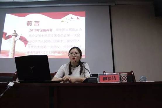5�22日晚,院�9期青马班“聚焦两会,全面贯彻两会精神”报告在知行楼五楼报告厅举行,院党委副书记柳松洁授课。报告之初,柳松洁和学员们分享了“两会热点”,分别列举蓝天保卫战、加快解决煤污染、海绵城市、中兴事件、科技创新、城镇失业率、双创升级版、人工智能等热点话题。紧接着,带领学员们学习�2018年十大热点:健康中国、就业问题、一带一路、环境问题、脱贫攻坚、人工智能、地产调控、户籍改革、食品安全、社会保障等内容。柳松洁通过热点词和关键词的解读,帮助学员们认识当前国情,把握当前国策的主线条,从而明确自己身负的责任和担当。作为新时代的大学生,应该做到关心国家大事,胸怀国家,此次报告会学员们对我国当前的现状和未来有进一步了解,同时也为学员们未来的努力指明了方向�