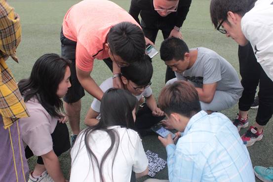 之后,各班通过参与活动所获得的二维码碎片进行拼凑,在班内同学们的共同努力,各班成功扫码,开启“你画我猜“的终极游戏环节。同学们发挥自己的想象力,通过最简单的肢体表现方式,在规定时间内完成终极挑战,顺利获得本次活动奖品。