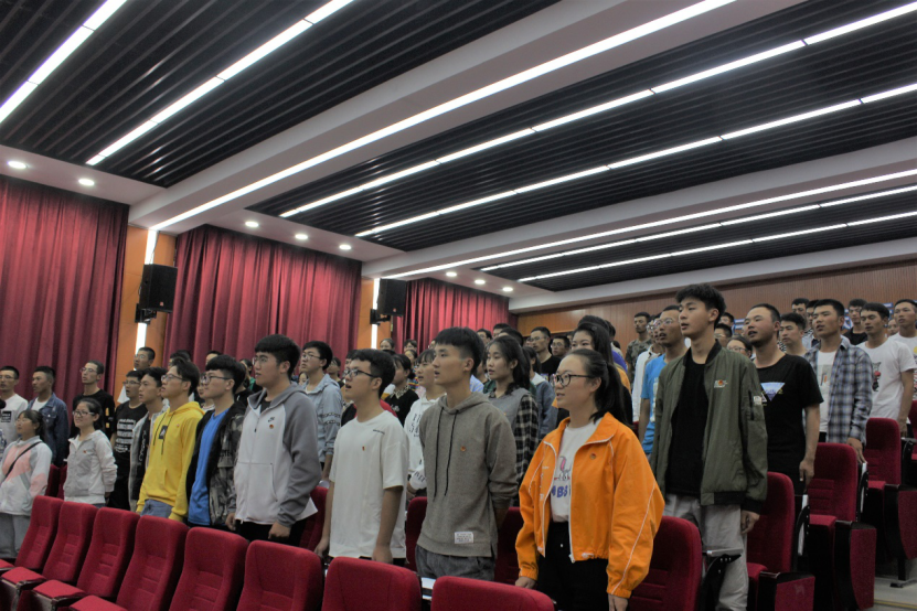 陈俊领誓,全体成员举起右拳庄严宣誓。