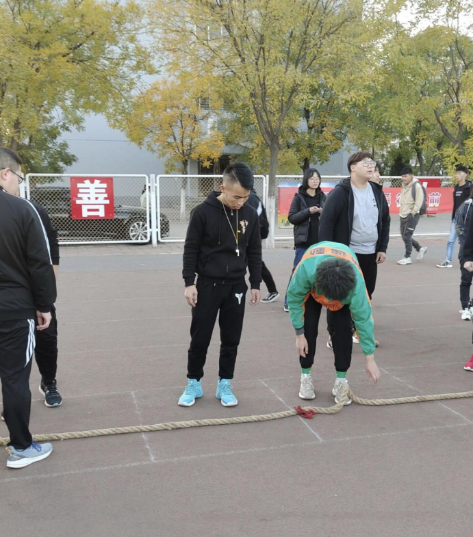 裁判哨声响起,参赛人员紧握绳子,努力下压身体,用尽力气将绳子拉到自己这方。同学们为其加油助威,恨不得冲上前奉献自己的一份力量。经过激烈的耐力与体力的较量,7支队伍成功晋级,获得进行下场晋级赛的资格。