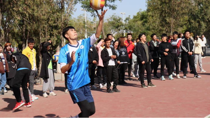 与人文学院进行了激烈的男排比赛。