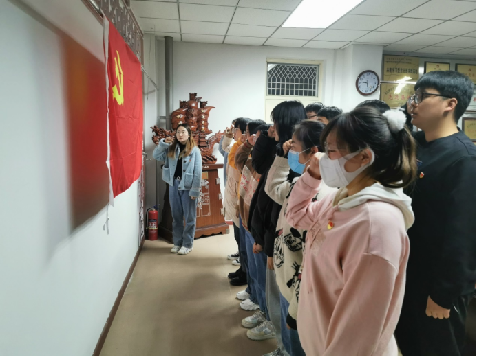 随后全体发展对象面对党旗宣誓,由党支部组织委员丰丽阳领誓。