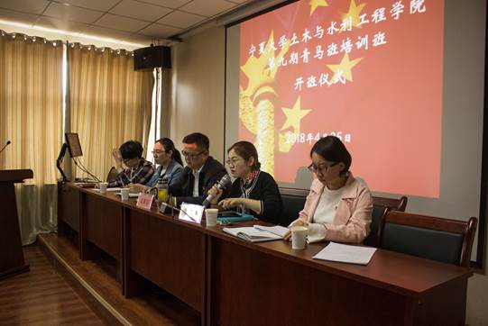 2018�4�25日下午,宁夏大学土木与水利工程学院第九期“青年马克思主义者培养工程”在宁夏大学文萃校区知行楼五楼会议室正式开班。学院党委书记高继明出席并发表讲话,党支部书记、年级主任参加开班仪式,青马班全体学员参加培训,开班仪式由院党委副书记柳松洁主持�