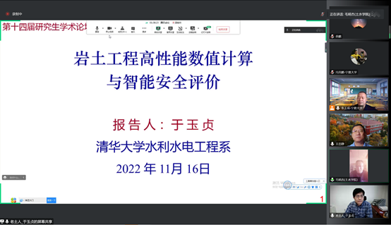 为了进一步提高研究生培养质量,为学院第十四届研究生学术论坛营造良好的学术氛围,2022年11月16日,清华大学于玉贞教授应邀为德州扑克平台排名师生做了题目为“岩土工程高性能数值计算与智能安全评价” 的线上学术报告,报告会由毛明杰院长主持,学院师生共200余人参加了报告会。
