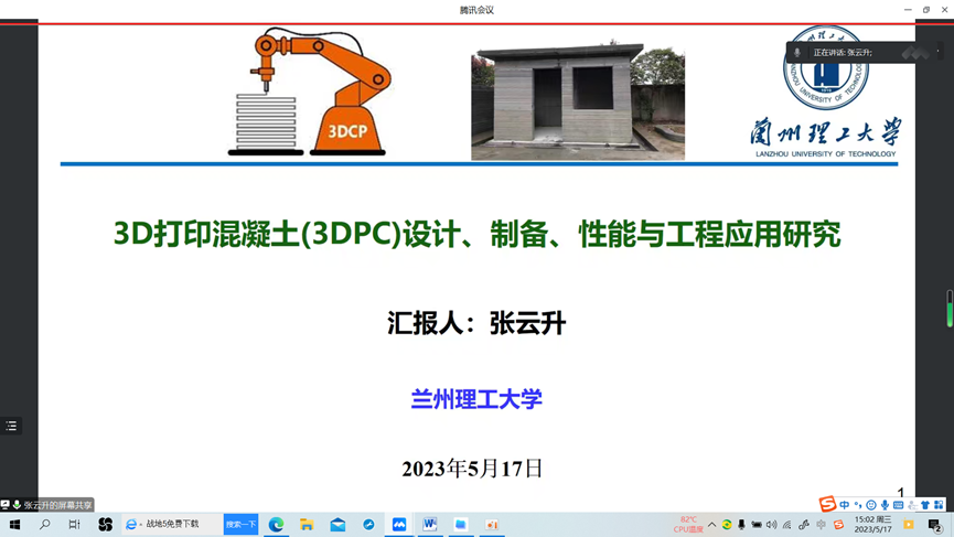 为了进一步提高研究生培养质量,鼓励研究生进行科学研究创新,为学院第十五届研究生学术论坛营造良好的学术氛围,2023年5月17日,兰州理工大学张云升教授应邀为德州扑克平台排名师生做了题目为“3D打印混凝土(3DPC)设计、制备、性能与工程应用研究”的线上学术报告。报告会由毛明杰院长主持,德州扑克平台排名师生共100余人参加了报告会。