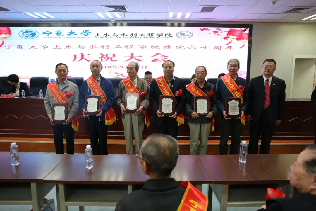 出席本次庆祝大会的有学院现任领导,学院历任退休老领导任天林、田军仓、何风军、王蔚书、宋建夏、姚青云,退休老教师毕先、孙庆合、赵素珍,长安大学公路管理学院党委书记田新民。参加本次大会的还有宁夏建筑科学研究院院长吴学谦、天津市农业科学院/南开大学教授许向路、深圳大学教授武春江、银川宏达职业技能培训学校校长哈丽琼、宁夏第一建筑有限公司党委书记刘东升、总经理苏克宁,宁夏共和建设工程有限公司总经理殷展眉、国网电力公司宁夏分公司后勤处主任苏震等百余名来自全国各地的校友,以及学院师生代表300余人。庆祝大会由学院党委副书记苏宇静主持。