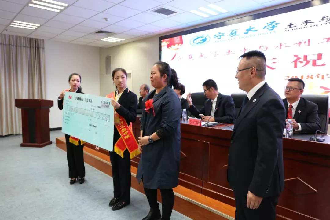 之后,学院校友代表银川宏达职业技能培训学校校长哈利琼向学院进行捐赠,哈利琼个人捐赠五万元,毛明杰院长接受了校友捐赠。
