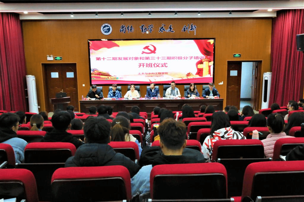 第十二期党员发展对象与第三十三期入党积极分子培训班开班仪式于知行楼三阶开展。学院党委书记张晓天、党委副书记苏宇静、党委副书记柳松洁、各学生党支部书记、2020年秋季学期积极分子、2020年下半年党员发展对象全体学员参加了本次开班仪式。